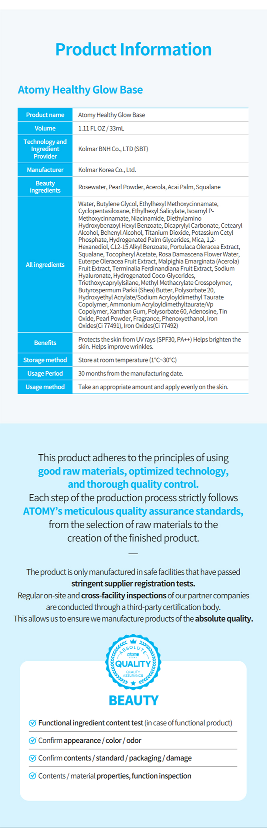 Atomy may elect to return the product to the manufacturer to determine the nature of the problem. Atomy reserves the right not to offer an exchange, refund or repair where the item fault is a result of misuse or neglect.